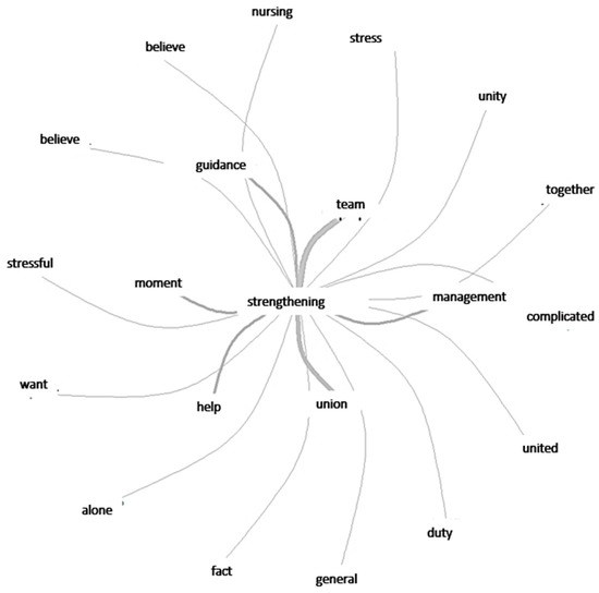 The image produced by the similarity analysis, illustrated in Figure 1, shows how the word “strengthening” connected with the positive points encountered in the discussions.