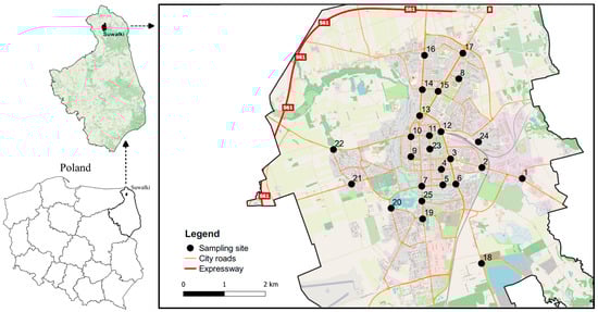 Skorbiłowicz, M.; Trybułowski, Ł.; Skorbiłowicz, E. Spatial Distribution and Pollution Level of Heavy Metals in Street Dust of the City of Suwałki (Poland). Int. J. Environ. Res. Public Health 2023, 20, 4687. https://doi.org/10.3390/ijerph20064687