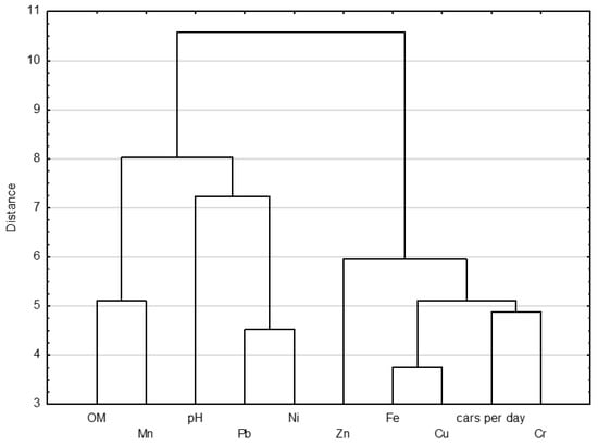 - Factor analysis identified two factors. The first factor correlated with Cr, Cu, Ni, Zn Pb and Fe was related to local industrial activities and the movement of motor vehicles. The second factor correlated with Mn and OM. The origin of Mn is related to motor vehicle traffic and its natural sources. The results of FA analysis were confirmed by CA analysis;