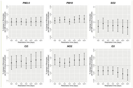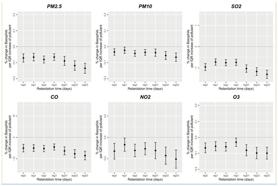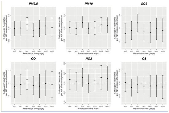 APA StyleXue, Y., Cong, J., Bai, Y., Zheng, P., Hu, G., Kang, Y., Wu, Y., Cui, L., Jia, G., & Wang, T. (2023). Associations between Short-Term Air Pollution Exposure and the Peripheral Leukocyte Distribution in the Adult Male Population in Beijing, China. International Journal of Environmental Research and Public Health, 20(6), 4695. https://doi.org/10.3390/ijerph20064695