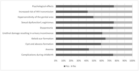 Participants’ knowledge about possible long-term complications caused by FGM in percetages (n = 120).
