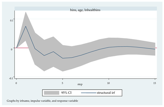 Impulse response function diagram of “lnhealthins” impacted by “age”.