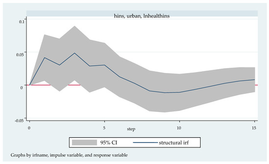 Impulse response function diagram of “lnhealthins” impacted by “urban”.