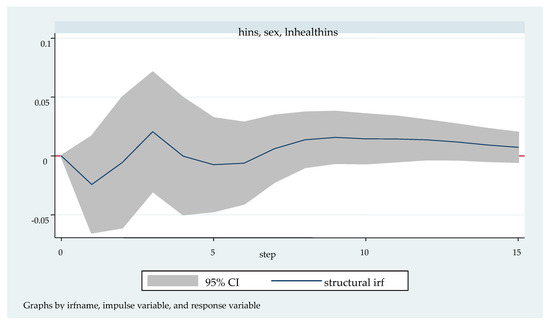Impulse response function diagram of “lnhealthins” impacted by “sex”.
