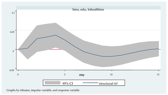 Impulse response function diagram of “lnhealthins” impacted by “edu”.