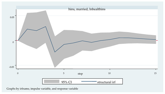 Impulse response function diagram of “lnhealthins” impacted by “married”.