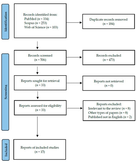 - Page, M.J.; McKenzie, J.E.; Bossuyt, P.M.; Boutron, I.; Hoffmann, T.C.; Mulrow, C.D.; Shamseer, L.; Tetzlaff, J.M.; Akl, E.A.; Brennan, S.E.; et al. The PRISMA 2020 Statement: An Updated Guideline for Reporting Systematic Reviews. BMJ 2021, 372, n71. [Google Scholar] [CrossRef]