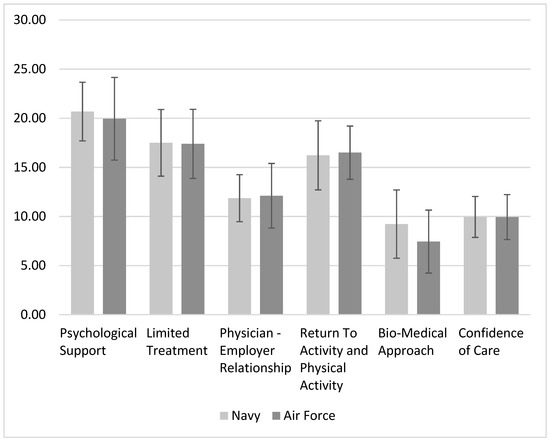 This study investigated the attitudes and beliefs of primary care physicians in the Israeli Navy and the Air and Space Forces regarding chronic LBP and the impact of an ETMI workshop intervention upon physicians. Most enrolled physicians had under 5 years of clinical experience and were general practitioners without specialties. The two groups had similar characteristics. In Israel, the military physicians are usually graduates of a unique training program called “Tzameret”. In this program, every year 70 students start medical school at the Hebrew University in Jerusalem, before their military service (a reverse order compared to their high school classmates). During med school, they learn military-related topics such as trauma, but no special education regarding primary care or orthopedics besides the regular curriculum. After completion of an internship year following medical school (as required in Israel to complete their MD requirements) they are enlisted. The medical officers’ course is a training program in the IDF, performed combined for all physicians, and only then they will be divided into their units. Specialized medical courses for the Navy and Air Force’s unique environments are performed in-house and do not address subjects related to primary care medicine, already learned in medical school. Further medical training is also dependent on the needs of the specific unit where the physician is posted. It is important to note that most physicians are the primary medical figures in their units; second to them are the medics, and in some units, nurses and physiotherapists. Clinical decisions regarding the management of low back pain cases will be taken by primary care physicians and therefore they were chosen as our target population for intervention.