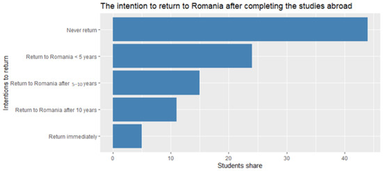 Figure 4). On the other hand, only 5% of respondents want to return immediately after completing their studies. Thus, Romania ends up financing the exodus of medical personnel to developed states of Europe by covering the cost of undergraduate studies.