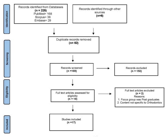 - Raghavan, S.; Alhaija, E.S.A.; Kamran, A. Orthodontic Curricula in Undergraduate Dental Education: A Scoping Review. Preprints 2023, 1–11. [Google Scholar] [CrossRef]