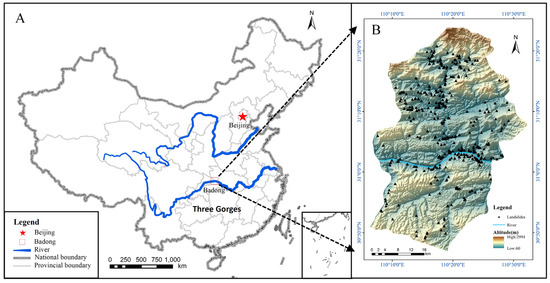 Location of the study area in China ((A) map of China, (B) map of Badong County).