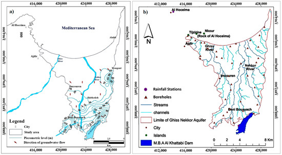 (a) Piezometric map and (b) hydrographic network of the Ghiss Nekkor aquifer.