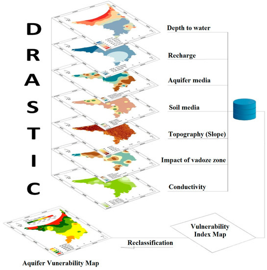 - Kumar, S.; Thirumalaivasan, D.; Radhakrishnan, N. GIS Based Assessment of Groundwater Vulnerability Using Drastic Model. Arab. J. Sci. Eng. 2014, 39, 207–216. [Google Scholar] [CrossRef]