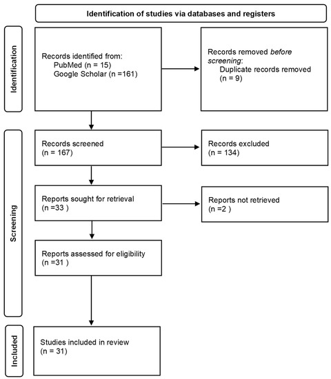 - Page, M.J.; McKenzie, J.E.; Bossuyt, P.M.; Boutron, I.; Hoffmann, T.C.; Mulrow, C.D.; Shamseer, L.; Tetzlaff, J.M.; Akl, E.A.; Brennan, S.E.; et al. The PRISMA 2020 statement: An updated guideline for reporting systematic reviews. BMJ 2021, 372, n71. [Google Scholar] [CrossRef]