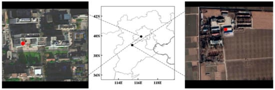 Geographical location of the sampling sites: Beijing (left) and Gucheng (right).