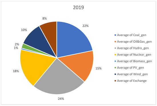 Distribution of generation sources in 2019.