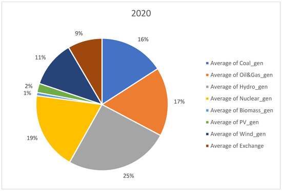 Distribution of generation sources in 2020.