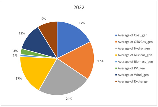 Distribution of generation sources in 2022.