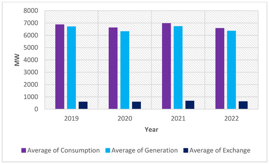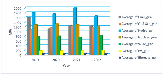The generating units based on resource type distribution that covered the load year by year from 2019 to 2022 are depicted in Figure 6. Both non-RES (nuclear, coal, oil and gas) and RES (including hydro) contributed to supply the consumption (as in Figure 6).