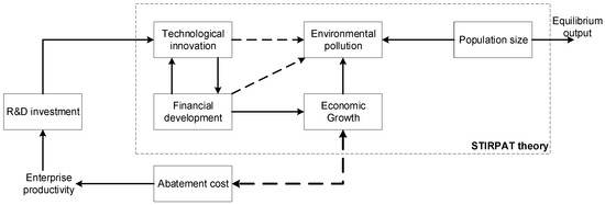 Based on the STIRPAT model and financial development theory, we can obtain the impact of financial development and technological innovation on environmental pollution, as shown in Figure 1: