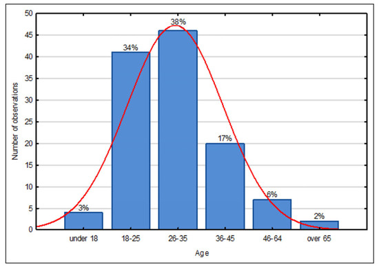 The second stage was the questionnaire survey conducted among the inhabitants of the city and its immediate vicinity with regard to their perception of the level of smart solutions introduced in the city of Suwałki. To this end, an authors’ original questionnaire was drawn up, targeting the inhabitants of both the city and its immediate surroundings (a neighbourhood within a radius of up to 20 km, functionally linked to the city). A total of 120 respondents took part in the survey. The study was conducted from January 2022 to April 2022 in an online format due to the COVID-19 pandemic. Survey participants were recruited via local web portals and social networks (including the city’s social media channel).