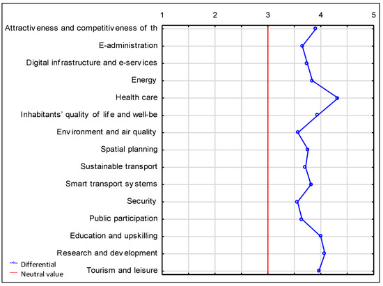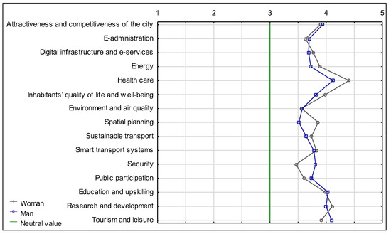The study allowed the inhabitants’ expectations, problems, and needs to be identified. The survey questionnaire allowed the inhabitants to express their opinions on their perception of the city and to assess the level of development in recent years as well as the smart city solutions introduced into the urban fabric. Moreover, the study results also identified the areas which, in the inhabitants’ opinion, require changes and indicated the priority areas in which measures should be implemented.
