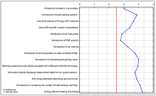 Based on the survey, it can be concluded that the city has introduced numerous amenities to facilitate and improve the quality of life. Inhabitants are satisfied with the functioning of most aspects of the urban space, but they are also noticing problems that require intervention. The priority action to be taken by urban communities should be to improve health care and development opportunities. Further, the most desirable solutions following health care include energy-efficient heating of buildings, ticket vending machines in public transport, and covered rain-protected bicycle parking places/racks. On the other hand, the least popular solution is park and ride. Knowing the public’s position, city authorities may focus on the introduction of changes in those areas where they are most desired by inhabitants.