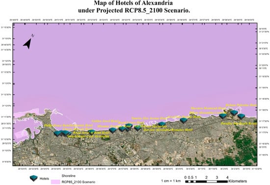 Coastal hotels in Alexandria under the projected RCP8.5 scenario until the year 2100.