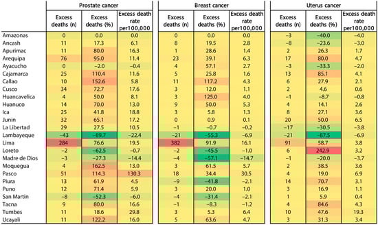 Estimating Excess Mortality Due to Prostate, Breast, and Uterus Cancer during the COVID-19 Pandemic in Peru: A Time Series Analysis