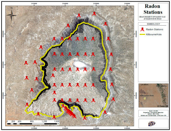 We previously mentioned the usefulness of the knowledge of radon or radioactivity concentration variations for structural geology characterization. It is well documented that for gases crossing uranium-rich underground lithologies, fractures or discontinuities often constitute a favorable exit route to the Earth’s surface. Here, the convenience to employ soil radon gas measurements in the case of Kilbourne Hole is justified since its formation is the consequence of mass displacements, with a favorable location on the north-trending fault of the Fitzgerald–Robledo fault system. Expected Rn anomalies at the crater will provide new information to determine local characteristics. For instance, the degree of correlation between the concentration of surficial soil radon gas, and local geophysical characteristics such as the magnetic field and gravity anomaly.
