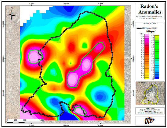 Therefore, underground radium radionuclides show a large concentration variability of up to 3000 Bq/kg. Consequently, as an anomaly accumulation, its occurrence is an expected event at Kilbourne Hole (as previously mentioned by an explosive eruption); these expectations are supported by the studies of Cothern and Smith [12].