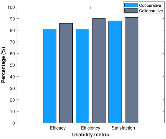 The effectiveness, efficiency and satisfaction metrics were measured on a Likert scale of percentages as in Figure 5. The first two questions are related to effectiveness, the next two are related to efficiency and the last is related to satisfaction. We carried out the same survey under the two proposed schemes. Although the user does not have to understand the algorithm’s intelligence, the network’s behavior reflects its consequences on the user and their interaction with the system. We found that the collaborative system is more pleasant and shows 8% better performance for the user.