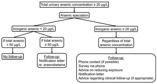 Flow chart of protocol for evaluating and following up on urinary arsenic levels.