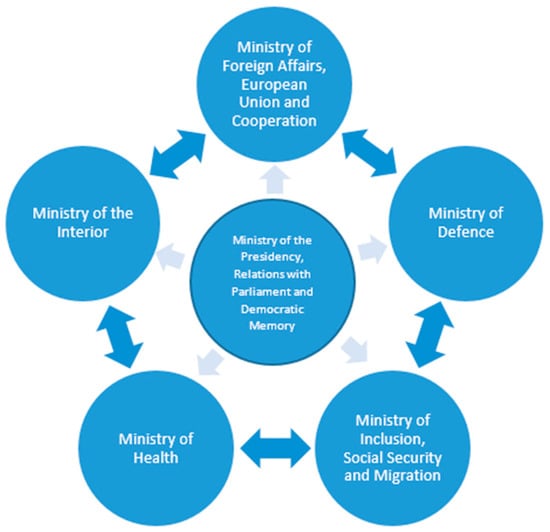 One of the first measures adopted by the Government was the creation of an Inter-Ministerial Coordination Commission (Figure 1) led and coordinated by the Minister of the Presidency, Relations with the Parliament and Democratic Memory. It was made up of representatives from all the ministries involved in the response: Ministry of Foreign Affairs, European Union and Cooperation; Ministry of Defense; Ministry of Inclusion, Social Security and Migration; Ministry of the Interior; and Ministry of Health. The Commission was permanently active throughout the whole operation and met daily to analyse the information received, plan every day’s flights and take the appropriate decisions in response to the problems identified.