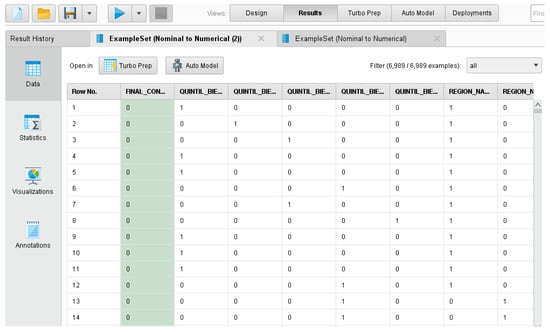In that sense, the choice to use RapidMiner as the software for the development of the computational models is based on the fact that it offers fully customizable processes that go far beyond simple application scenarios and flexibility through its graphical user interface, with no programming involved at the bottom level, making our research easier and more accessible [58].