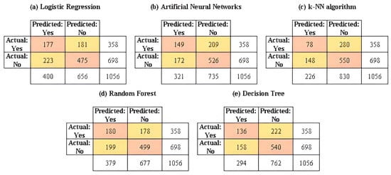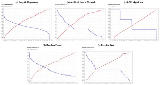 The classification models selected from the existing set of traditional machine learning techniques are logistic regression (LR), artificial neural networks (ANN), decision trees (DT), k-NN algorithm (k-NN) and random forest (RF). For all five models, we pose the research objective as a two-class problem, such that each value in the label is binarized.