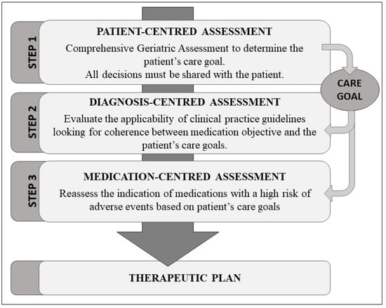 - Molist-Brunet, N.; Sevilla-Sánchez, D.; Puigoriol-Juvanteny, E.; Barneto-Soto, M.; González-Bueno, J.; Espaulella-Panicot, J. Improving individualized prescription in patients with multimorbidity through medication review. BMC Geriatr. 2022, 22, 417. [Google Scholar] [CrossRef]