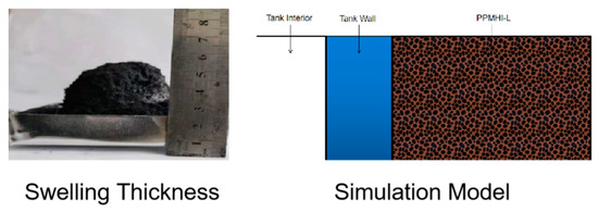 The emergency thermal insulation coating is defined in the simulation software and named PPMHI-L. In the established model, a new layer was added to the outside of the tank wall, and its material parameter was selected as PPMHI-L. In order to ensure the simulation accuracy, the thickness of the coating model is defined as 3 cm according to the final thickness of the expansion layer in the experiment. The coating model is shown in Figure 25. The original model has a grid number of 1.03 million.