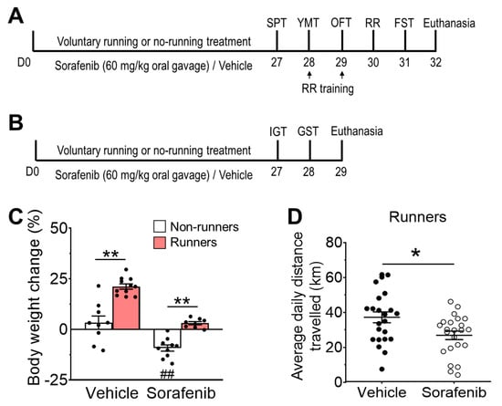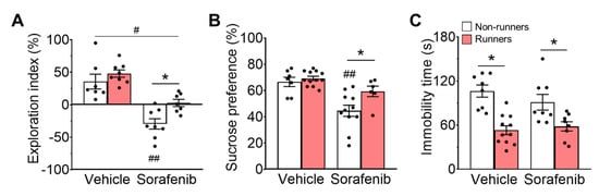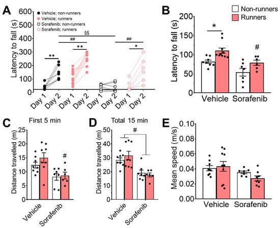 3.3. Voluntary Running Restored Motor Learning Deficit Induced by Sorafenib