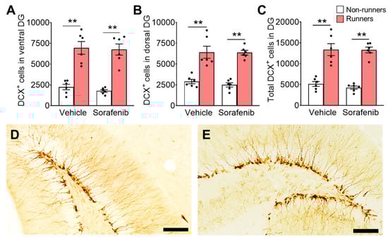 3.5. Voluntary Wheel Running Increased Number of Immature Neurons in the Hippocampus