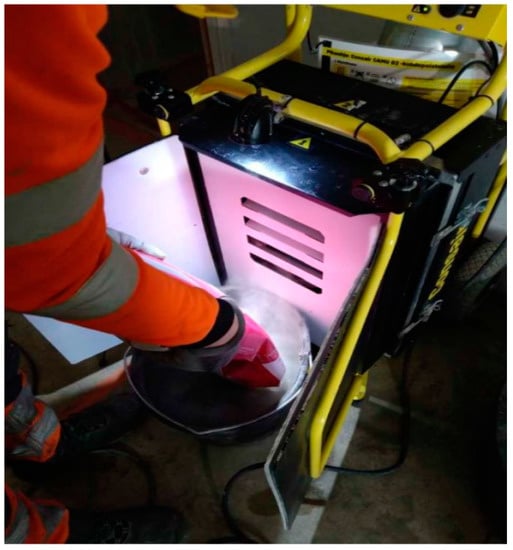 Using a mobile air cleaner to lower dust exhausts to general air from a hand-held jackhammer with a blade. Reproduced with permission from Tuomi et al., Finnish Institute of Occupational Health, 2022 [].
