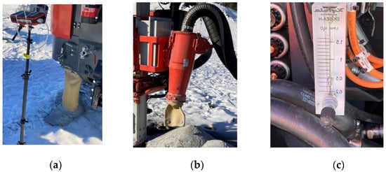 (a) Drill rig back separator with soc. (b) Front separator with soc. (c) Water supply adjustment of drill rig (ca. 0.4 dm3/min). Reproduced with permission from Tuomi et al., Finnish Institute of Occupational Health, 2022 [].