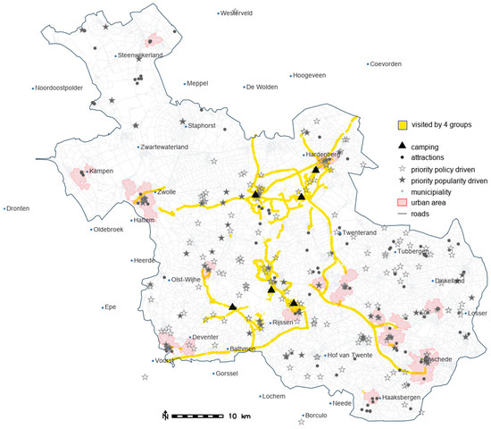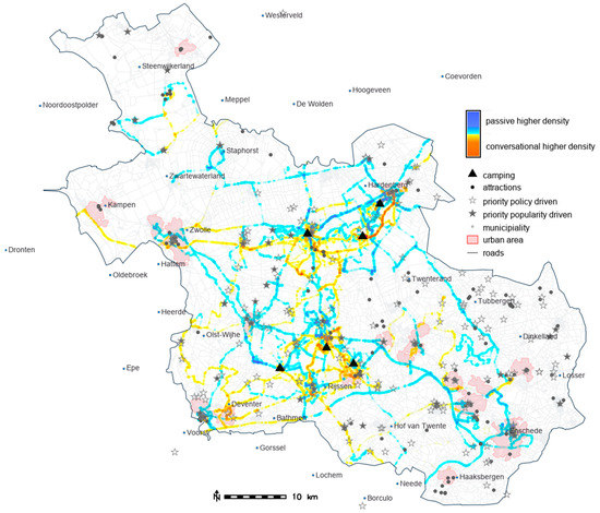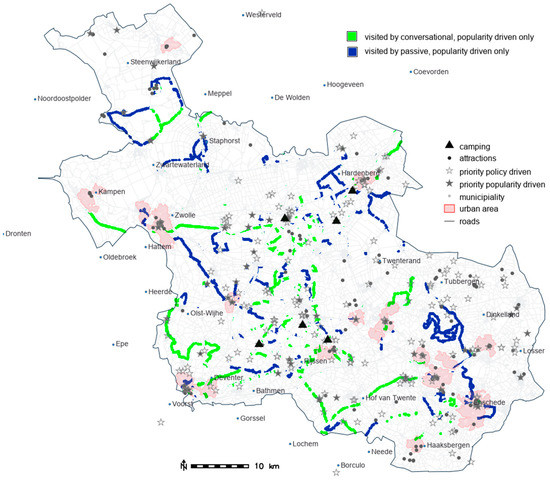 As a region benefiting from tourism, but also facing intense tourist flows in a handful of heavily visited areas, Overijssel is an ideal context for the present study. This province of 1.16 million inhabitants is located in the northeast of The Netherlands, and borders Germany to the east and other Dutch provinces to the north, south, and west. The province covers a total of 342,273 hectares, of which 6773 (1.98%) are covered by recreational areas and 34,474 (10.07%) by forest. While existing discourse about overtourism largely concerns cities, especially large, internationally famous historic city centers such as Venice or Amsterdam, the situation is somewhat inverse in Overijssel. While there are several Hanseatic historic city centers which attract tourists, such as Zwolle (2021 population 129,840) and Deventer (2021 population 101,236), these cities are considered relatively less-visited areas by Marketing Oost for the purpose of the present study. In contrast, the town of Ootmarsum (2021 population 4460), the village of Giethoorn (2021 population 2805), and several natural and agricultural landscapes such as the Vecht valley and the Sallandse Heuvelrug National Park comprise the heavily visited areas of Overijssel. Thus, the policy to spread tourists away from heavily visited areas in Overijssel corresponds with the goal to increase visits to urban areas. In contrast, a region such as Amsterdam might indicate fewer tourists in urban areas as a policy goal to reduce crowding.