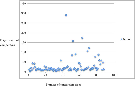 The number of concussions and the days out of competition for each concussion.