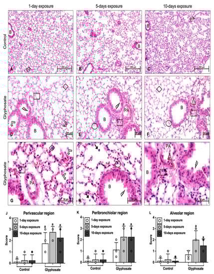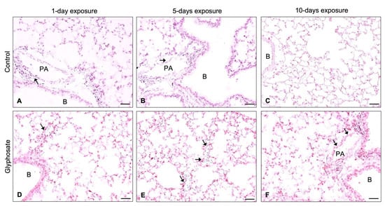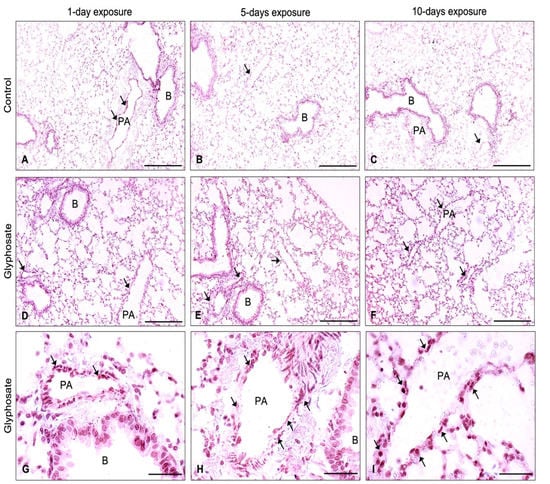 - Pandher, U.; Kirychuk, S.; Schneberger, D.; Thompson, B.; Aulakh, G.; Sethi, R.S.; Singh, B. Lung Inflammation from Repeated Exposure to LPS and Glyphosate. Cell Tissue Res. 2021, 386, 637–648. [Google Scholar] [CrossRef] [PubMed]