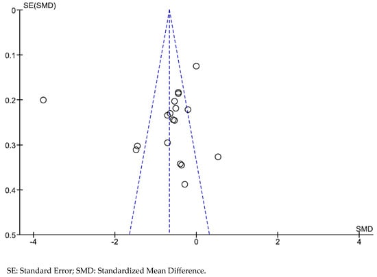The funnel plot for meta-analysis on the overall interventions that were utilized in reducing internalized stigma in comparison to Treatment as Usual or the Waiting List.