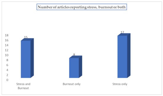 The number of articles reporting on stress and burnout.