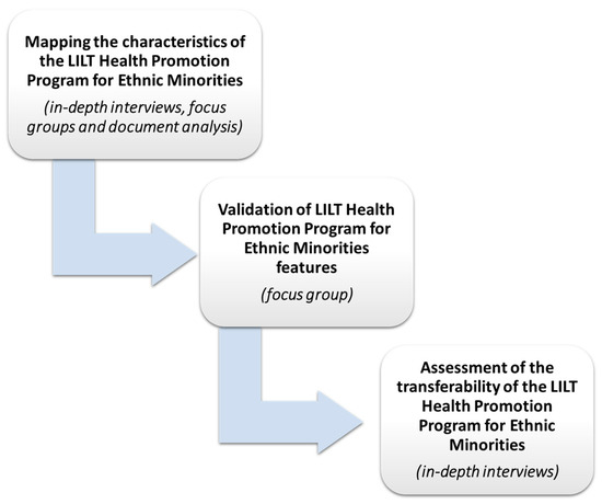 Mapping the characteristics of the LILT Health Promotion Program for Ethnic Minorities. In order to map and collate the characteristics of the program, this first phase involved conducting in-depth interviews, focus groups, and document analysis. In particular, the following were involved: