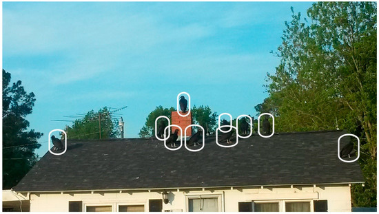 The landfill attracts buzzards (also known as turkey vultures) into the community, which are a major disturbance of peace to residents. Participants voiced annoyance and fear over the increasing and consistent presence of buzzards in trees in their yards and on the roofs of houses, 10 of which have been outlined for ease of viewing in the discussion image for the second photovoice discussion below (Figure 1).