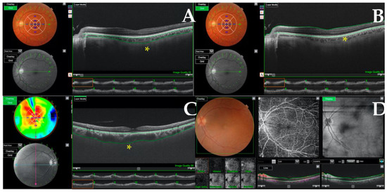 - Mazzeo, T.J.M.M.; Leber, H.M.; da Silva, A.G.; Freire, R.C.M.; Barbosa, G.C.S.; Criado, G.G.; Jacob, G.A.V.; Machado, C.G.; Gomes, A.M.V. Pachychoroid disease spectrum: Review article. Graefe’s Arch. Clin. Exp. Ophthalmol. 2022, 260, 723–735. [Google Scholar] [CrossRef]